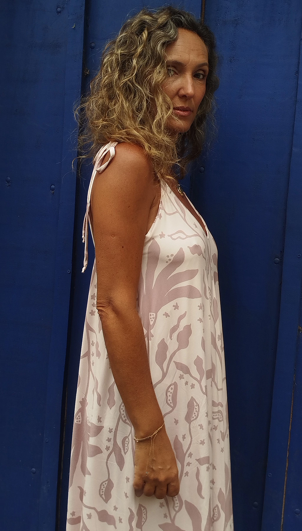 Com estampa floral em tons suaves que remetem ao balanço do mar e à poesia das plantas tropicais, este vestido longo é ideal para quem busca se destacar com elegância, frescor e conforto. Seu corte fluido e caimento suave abraçam o corpo com leveza, enquanto os laços ajustáveis nos ombros adicionam um toque feminino e descontraído.